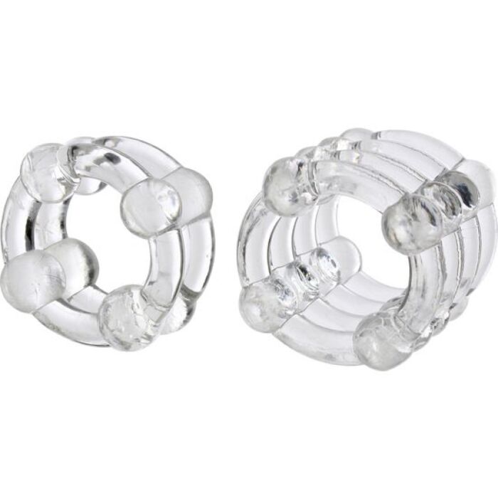 Gracias a nuestros anillos para el pene, conseguirás que tu erección sea mucho más duradera, lograrás retardar la eyaculación y mantener tu pene erecto mucho más tiempo... lo cual significa más placer durante más tanto para tí como para tu pareja. Dispone de un anillo formado por dos unidos entre si, y de otro anillo formado por 4 a su vez unidos entre ellos.