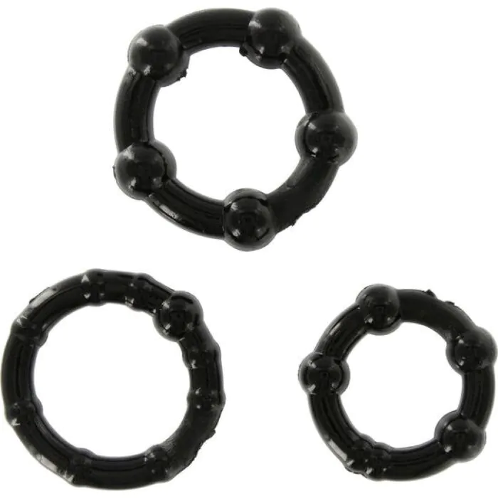 Rendi le tue erezioni più durature con il set di tre anelli in silicone di Seven Creations. Adatti a qualsiasi dimensione, puoi usarli separatamente o insieme per un controllo maggiore.