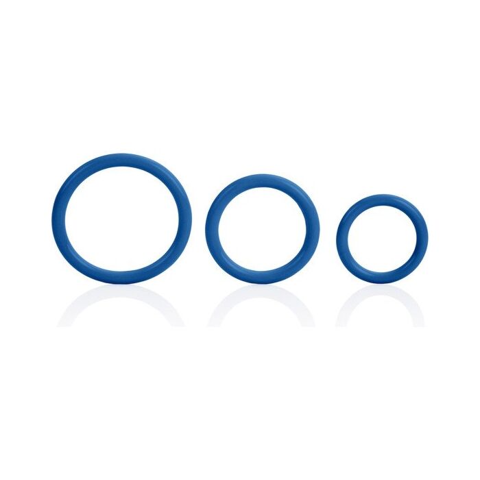 Vuoi potenziare le tue erezioni e godere di orgasmi più intensi? Con il set Tri-rings blu lo otterrai in modo semplice e piacevole!