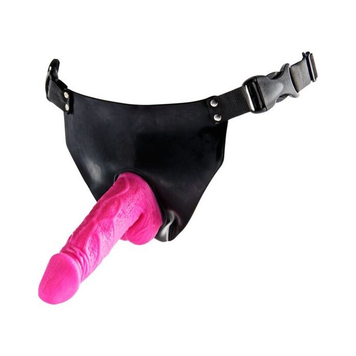 BRUTAL PINK POWERGIRL STRAP-ON es unarnés ajustable para mujeres con un fenomenal pene realístico fabricado de vinilo de gran calidad.