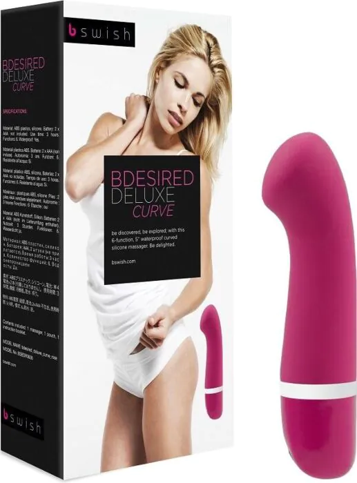 Il Bdesired Deluxe Curve è un vibratore curvo progettato per stimolare il punto G. Con 6 modalità di vibrazione, è consigliato per chi cerca un'esperienza personalizzata.