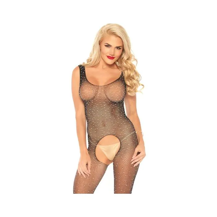 Body a rete lucido con spacco - nero