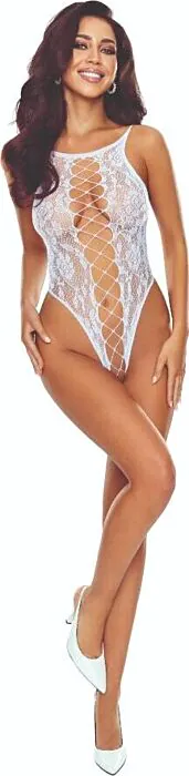 Il bodystocking PASSION in pizzo bianco combina eleganza e sensualità. Ideale per chi desidera indossare una seconda pelle che esalta ogni curva.