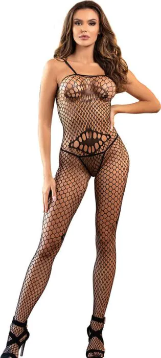 Sublime Bodystocking in rete nera che esalta la figura femminile con un design sofisticato. Adatta a ogni corpo, per serate indimenticabili.