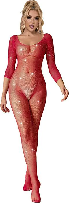 Un design di rete con diamanti che avvolge il corpo in modo sensuale e raffinato. Realizzato in nylon e spandex, questo bodystocking offre un'elasticità alta e un comfort prolungato, consigliato per ogni occasione speciale.