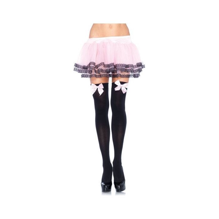 Leg Avenue Calze Coprenti Neri con Fiocco Rosa