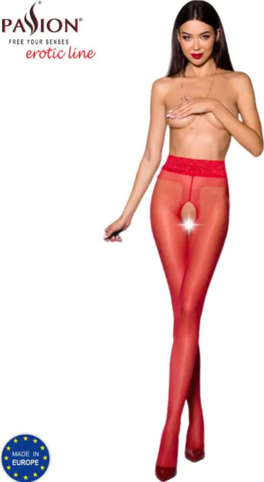 Le medias PASSION WOMAN TIOPEN 001 offrono una vestibilità comoda che si adatta perfettamente alla figura, con un'apertura tra le cosce che aggiunge un tocco di seduzione. Realizzate in un mix di 80% PA e 20% EA, queste medias sono resistenti e non provocano allergie.