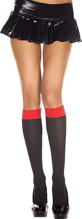 Il bicolore rosso/nero rende il calzino molto versatile: sta bene con lingerie nera o con dettagli rossi per richiamare il contrasto. È un accessorio pensato più per l'estetica che per l'uso tecnico.