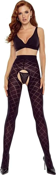 Le medias TIOPEN 025 di PASSION offrono un'eleganza classica con il loro design crotchless e motivo a rombi. Perfette per chi cerca un tocco audace nella propria lingerie.