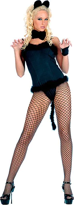 Questo è un costume "gatta" in nero, proposto da Music Legs nella taglia S/M: un capo pensato per chi vuole giocare con il ruolo senza troppe complicazioni. In negozio te lo descriverei come un outfit pensato per essere indossato subito, con un look definito che enfatizza la silhouette e comunica sensualità focalizzata sul gioco di ruolo.