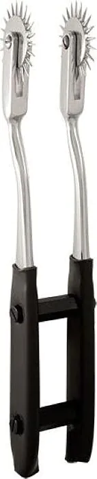 Stimolazione sensoriale potenziata grazie a due ruote che offrono il doppio delle sensazioni provocanti. Ogni ruota è dotata di piccole punte che scorrono delicatamente sulla pelle, risvegliando i tuoi sensi e aumentando la sensibilità durante il gioco. Realizzata con contatti in ottone placcato, questa girandola è compatibile con unità di elettrostimolazione per amplificare ulteriormente le sensazioni.
