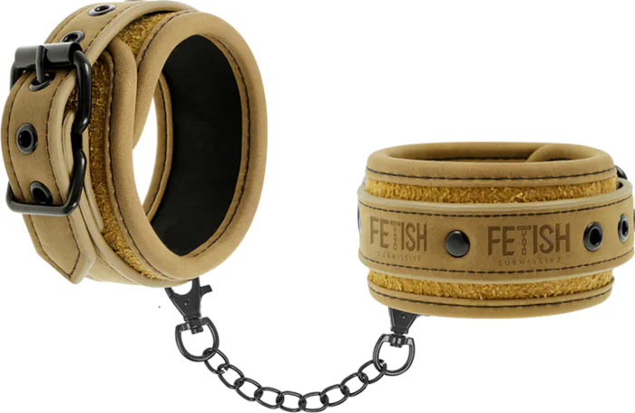 Manette eleganti in pelle vegana con interno imbottito. Ideali per principianti e esperti, offrono comfort e sicurezza durante i giochi di dominazione.