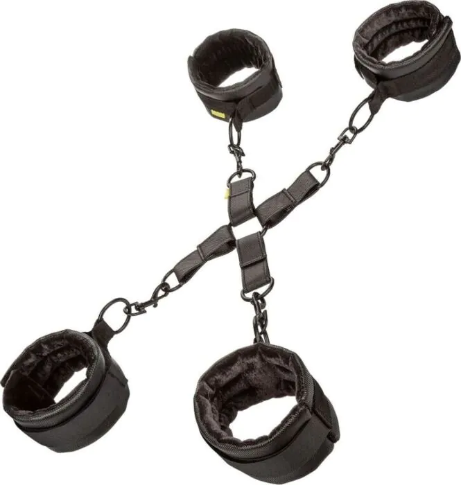Un'esperienza intensa e senza limiti ti aspetta con le manette BOUNDLESS HOG TIE di CALEXOTICS. Progettate per legare le mani e i piedi, queste manette sono totalmente regolabili e preparate per garantirti il massimo della destrezza grazie al loro design girevole. Realizzate in PU di alta qualità e rivestite in materiale vegano, offrono un comfort eccezionale.