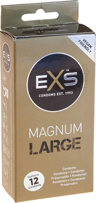 I preservativi Exs Magnum Large offrono una vestibilità sicura per chi ha misure superiori alla media. Realizzati in lattice naturale, sono lubrificati e vegani, per un'esperienza di piacere senza compromessi.