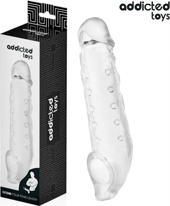 Aumenta la tua lunghezza e il tuo spessore con la guaina per pene Addicted Toys. Realizzata in materiale trasparente di alta qualità, questa fonda non solo migliora le prestazioni sessuali, ma permette anche di visualizzare l'azione in modo coinvolgente e senza distrazioni. Con una lunghezza totale di 27 cm e un diametro di 49 mm, è progettata per offrire un'ottima vestibilità e comfort.