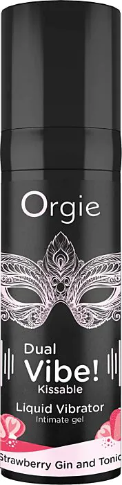 Dual Vibe di Orgie è un gel stimolante baciabile con aroma Strawberry Gin & Tonic: offre sensazioni vibranti e formicolio di intensità 6 in un flacone dosatore da 15 ml. È pensato per chi vuole aggiungere gioco orale e stimolazione tattile senza un dispositivo meccanico; pratico per coppie e per chi cerca un formato da prova o da portare in viaggio.