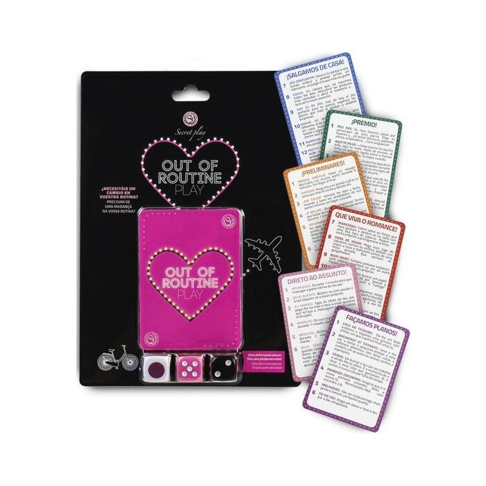 ¡Dai una svolta eccitante alla tua vita intima con il coinvolgente gioco "Out of routine play" di Secret Play! Accendi la passione e rompi la monotonia insieme al tuo partner. Sei pronto per scoprire nuove esperienze e goderti emozionanti sfide? Tira i dadi e immergiti in un mondo di divertimento e passione!