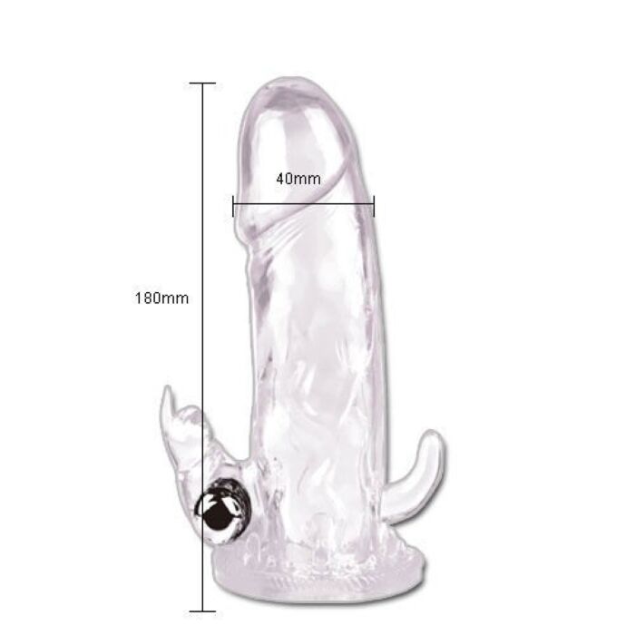 Aumenta le dimensioni e il piacere con questa guaina per pene. Morbida, adattabile e con stimolazione clitoridea, perfetta per momenti intensi.
