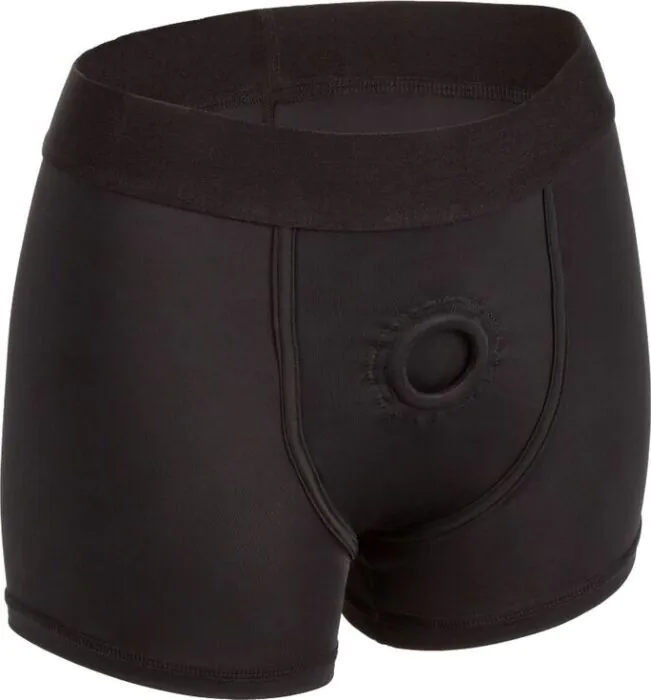 Imbracatura in stile boxer CALEXOTICS (taglia L/XL) pensata per chi cerca comfort e discrezione: fascia vita extra larga, tessuto elastico con fodera morbida e tasca interna per fissare il packer. Ottima per principianti e per chi desidera indossarla sotto i vestiti senza sentirla ingombrante.