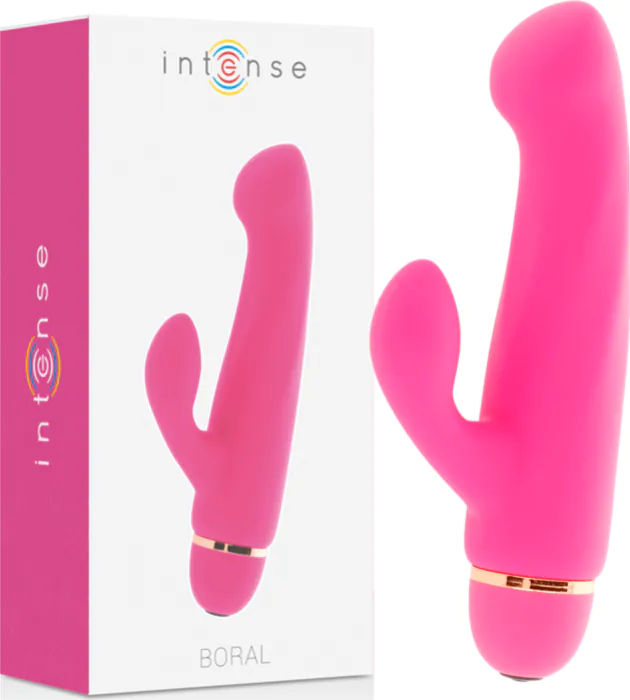 Stimolazione simultanea del clitoride e del punto G con 20 modalità di vibrazione. Il vibratore Intense Fun Boral, realizzato in silicone di grado medico, offre un'esperienza di piacere intensa e personalizzabile, grazie alla sua forma elegante e discreta.