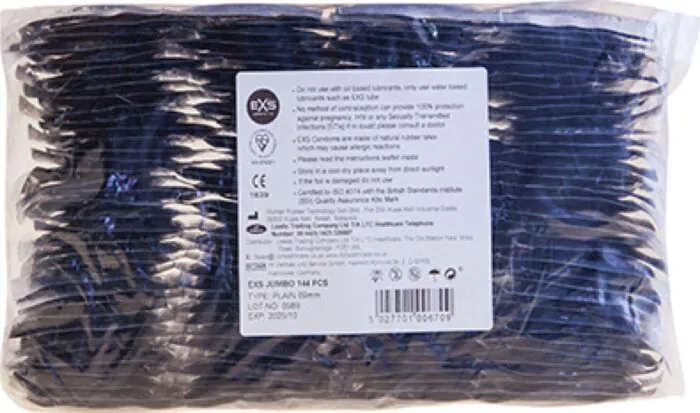 I preservativi Jumbo XL di Exs offrono una vestibilità comoda e sicura per penne più grandi della media. Confezione da 144 unità, ideali per chi cerca comfort e qualità.