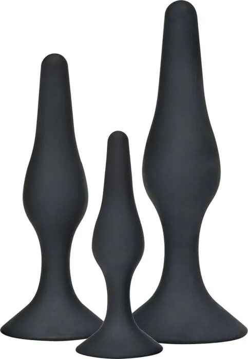 Kit di tre plugs anali in silicone di grado medico pensato per chi vuole iniziare con calma o aumentare la misura gradualmente. Ogni pezzo ha una silhouette curvata ed una base ampia per sicurezza; la scelta di silicone setoso garantisce una sensazione morbida al tatto e una pulizia semplice. Perfetto per chi cerca controllo e progressione senza complicazioni.