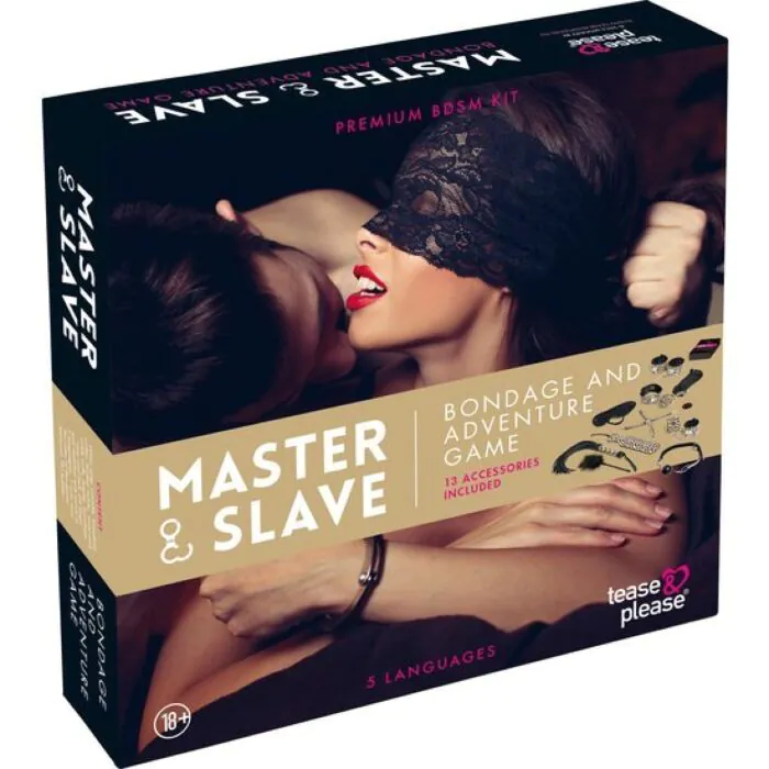 Intensifica il tuo gioco erotico con il kit Bondage Master & Slave di Tease & Please, che ti permette di esplorare l'universo della dominazione e della sottomissione. Con un'ampia gamma di accessori, tra cui un látigo, una mordaza, e 24 carte istruttive, ogni sessione sarà diversa e stimolante.