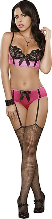 Conjunto di lingerie in rosa e nero che unisce eleganza e sensualità. Consigliato per chi cerca un tocco di classe per le serate speciali.