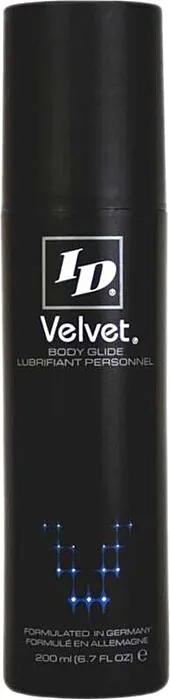 ID Velvet è un lubrificante a base di silicone che offre un'esperienza di piacere duraturo e senza frizioni. Consigliato per incontri sensuali e massaggi erotici.