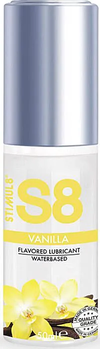 Lubrificante a base d'acqua STIMUL8 S8 al gusto vaniglia: una soluzione aromatizzata, delicata e conforme alle normative UE per chi cerca scorrevolezza e sapore durante i giochi intimi. Perfetto per sesso orale e per l'uso con giocattoli erotici in silicone; adatto a pelli sensibili grazie alla formula priva di parabeni, ftalati e glutine.