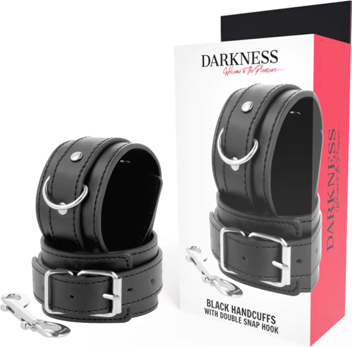 Vivi esperienze intense con le eleganti manette Darkness, cucite a mano in PVC leather con doppio nastro di rinforzo. I polsini completamente regolabili ti permettono di adattarle perfettamente ai tuoi polsi, garantendo comfort e sicurezza durante ogni utilizzo.