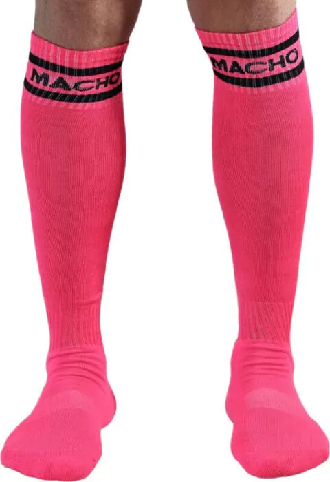 Sensazione di comfort e stile con i calcetini lunghi MACHO, realizzati in 100% fibra sintetica. Questi calcetini, dallo stile calza da calcio, sono un elemento fetichista che si abbina perfettamente con i tuoi capi di intimo preferiti.