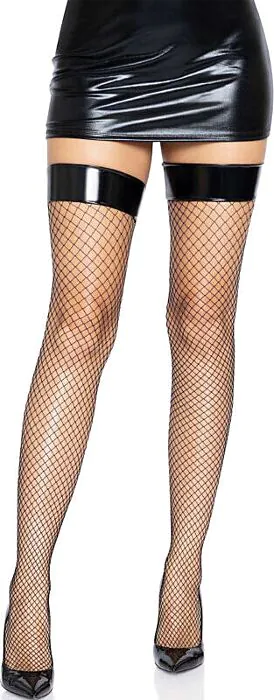 Realza tu sensualidad con estas medias de rejilla y vinilo. Combinan diseño atrevido y confort, perfectas para quienes buscan un toque de provocación.