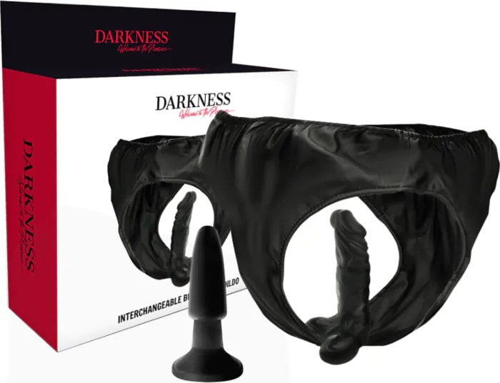 Arnesi senza vibrazione Darkness Sensations con plug e dildo intercambiabili