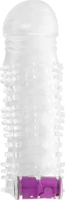 Funda pene con textura avanzata y bala vibrante para estimular el clítoris. Ideal para quien busca añadir duración y placer en pareja.