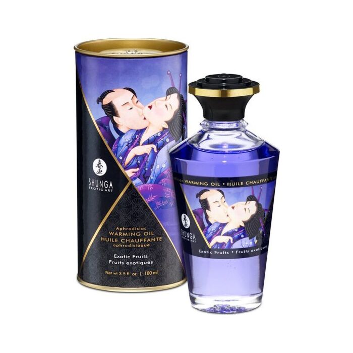 Scopri l'esotico ed appassionante mondo del piacere con l'olio Shunga effetto calore frutti esotici da 100 ml. Questo favoloso olio da massaggio sensuale di alta qualità ti porterà in un viaggio sensoriale unico, stimolando i tuoi sensi nel modo più sensuale e piacevole.