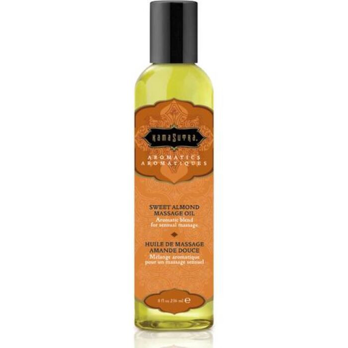 Rilassati con il sensuale olio da massaggio KAMASUTRA. Confezione da 236 ml, si assorbe facilmente e offre una dolce fragranza di mandorla. Ideale per chi cerca un momento di relax.