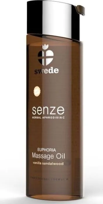 Olio da massaggio professionale SWEDE Euphoria: miscela di oli vegetali e oli essenziali puri con note di vaniglia e sandalo. Bottiglia in vetro da 75 ml, 100% vegano, pensato per massaggiatori professionisti ma perfetto anche per coppie che vogliono un prodotto di qualità e profumato. Scalda a bagnomaria per esaltare l'aroma. Non usare con preservativi in lattice.
