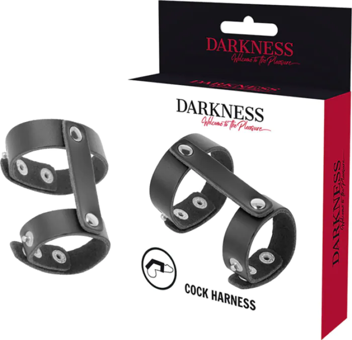 Aggiungi intensità alle tue serate con l'anello per pene e testicoli DARKNESS. Regolabile e realizzato in cuoio sintetico, è l'accessorio consigliato per chi cerca una stimolazione più forte.
