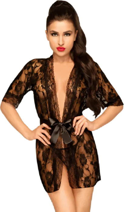 Il peignoir Sweet Retreat di PENTHOUSE è una combinazione seducente di pizzo e trasparenze, consigliato per chi ama sentirsi femminile e sicura di sé. Include un tanga coordinato.