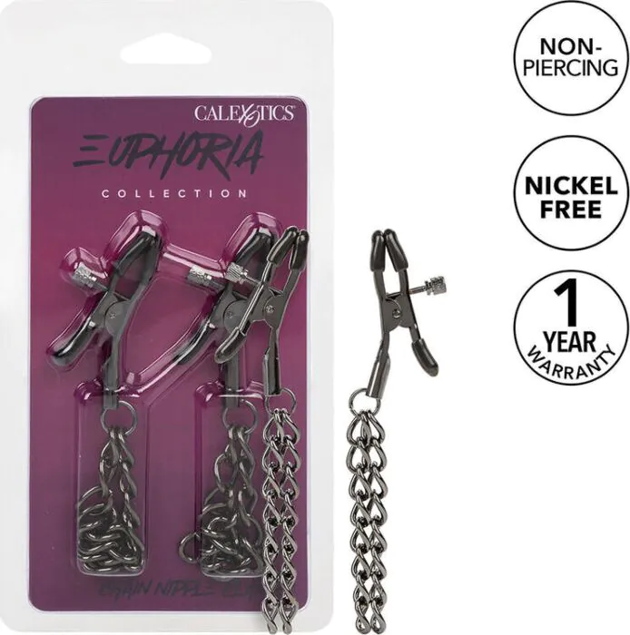 Le pinze per capezzoli Euphoria di CALEXOTICS offrono regolabilità totale e due catene per amplificare le tue sensazioni. Perfette per chi desidera esplorare il piacere in modo personalizzato.
