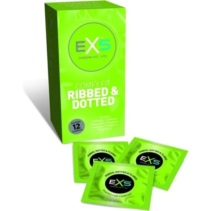 I preservativi Ribbed & Dotted di Exs offrono una stimolazione extra grazie alla loro texture di puntini e righe. Ideali per chi cerca un'esperienza più intensa.