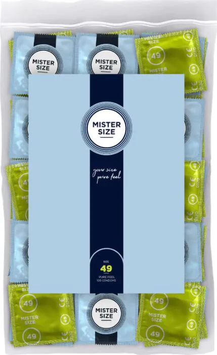 La larghezza nominale dei preservativi MISTER SIZE è di 49 mm, geeignete per penes leggermente più stretti.