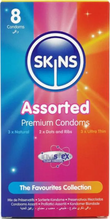 Un mix di 8 preservativi Skins per una varietà di esperienze. Con aromi e texture diverse, sono pensati per chi cerca comfort e protezione senza rinunciare al piacere.