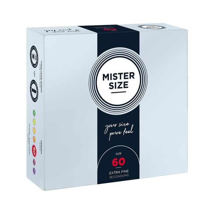 Non permettere a un preservativo male adattato di rovinare il tuo momento! Con Mister Size 60, godrai di maggiore comfort, sicurezza e sensibilità in ogni incontro. Acquista il tuo pacco da 36 preservativi ultra sottili e inizia a goderti come mai prima d'ora!