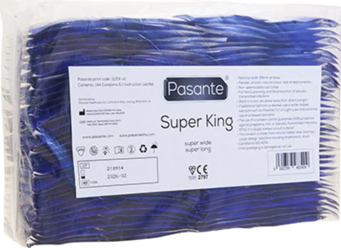 Con 144 unità, questi preservativi Pasante Super King XXL offrono spazio e comfort per chi cerca una vestibilità più ampia e lunga. Ideali per chi trova stretti altri modelli.