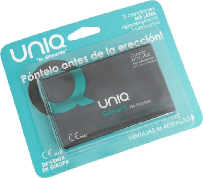 UNIQ SMART è un preservativo pre-erezione progettato per essere indossato prima dell'erezione, restando quasi invisibile una volta in posizione. È pensato per chi vuole prepararsi senza interrompere il flusso dell'incontro: offre protezione durante i preliminari e si adatta all'erezione successiva, mantenendo una sensazione di contatto naturale e una leggera intensificazione della percezione del piacere. Realizzato in resina sintetica (polietilene), è privo di lattice, ipoallergenico, trasparente, extra morbido e inodore, adatto a chi ha sensibilità o preferenze specifiche. La confezione include tre preservativi e tre bustine di lubrificante per facilitare l'uso fin dall'inizio.