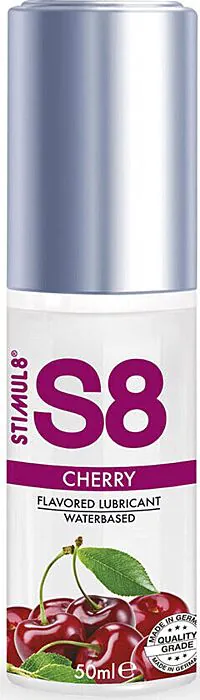 Lubrificante a base d'acqua STIMUL8 S8 al gusto ciliegia: una formula delicata, priva di parabeni, ftalati e glutine, pensata anche per il sesso orale. Buona scelta se cerchi un lubrificante aromatizzato che sia compatibile con preservativi e giocattoli. Non è studiato per usi subacquei o per chi cerca una lubrificazione a lunghissima durata senza riapplicazioni.