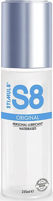 STIMUL8 S8 è un lubrificante a base d'acqua studiato per offrire scorrevolezza e compatibilità con la pelle e i materiali più comuni usati in ambito intimo. La sua formula è pensata per chi preferisce una sensazione naturale ma con una durata superiore alla media dei lubrificanti waterbase. È inodore, testato per allergie e formulato senza parabeni, ftalati, glutine, solfati, coloranti né conservanti aggressivi — quindi adatto a chi è attento agli ingredienti.