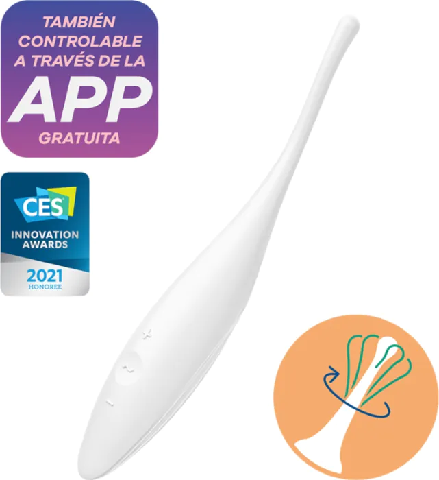 Il Satisfyer Twirling Joy stimola con vibrazioni circolari precise, geeignete per chi cerca un'esperienza personalizzabile. Consigliato per principianti e non.